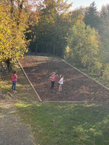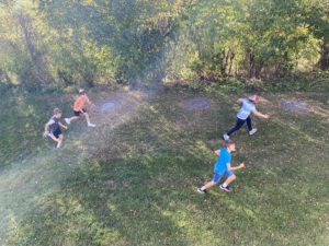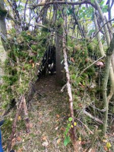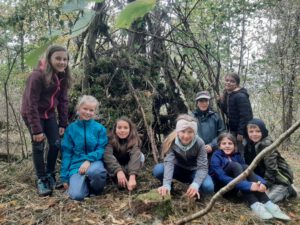 Was kann es schöneres geben, als nach einem leckeren Frühstück direkt raus zu gehen in die Natur. Beim Lagerbauen – fast schon eine Tradition auf Jungscharfreizeiten – übertrafen sich die Gruppen gegenseitig und haben wahre Paläste aus Ästen, Laub, Moos und was es sonst noch so alles im Wald zu finden gab, gebaut. Zur Abwechslung spielten Leiter und Kinder Bergauf-Fußball. Es handelt sich dabei um eine besondere Sportart, die nur bei entsprechende Hanglage ausübbar ist und bei der die Bergabspieler zumeist doch einen kleinen Vorteil haben. Doch dann kam der Regen. Und schnell verlegten die Mitarbeitenden das Programm ins Haus.
