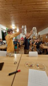Und was eignet sich besser als Banko Banko für einen verregneten Nachmittag? Beim rasanten Würfelspiel geht es darum, möglichst schnell an den Haupttisch zu kommen beziehungsweise dort lange zu verweilen, denn nur an diesem Tisch gibt es Süßigkeiten. So sagen es die Regeln… Am Abend ging es dann gleich mit dem Wettbüro weiter und die Jungscharkinder konnten sich in verschiedenen Spielen messen. Bei so viel Programm im Haus, gab es noch zur Feier des Tages einen Film.