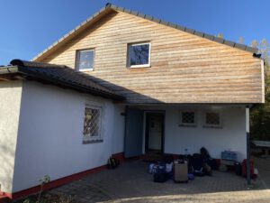Die Autobahn war voll und der Albaufstieg eng. Das konnte nur die A8 Richtung Ulm und ein Freitagnachmittag sein. Der Verkehr war etwas zäh, aber es lohnte sich bis zur Behelfsausfahrt noch auf der Autobahn zu bleiben. Den ersten fiel dann bald auf, dass sie keine Adresse für das Ziel hatten. Und die prompte Antwort, dass es nicht so prima ausgeschrieben sei und wir uns vielleicht über die Satellitenansicht nähern sollten, weckte nicht das größte Vertrauen in die Navigationskünste der Fahrer. Doch nach mehreren Kilometern Schotterpiste, einer Begegnung mit zwei Landmaschinen und einem Motorrad kamen nach und nach alle im Haus mitten in der Natur in Laichingen an.