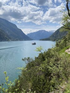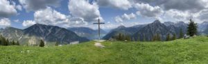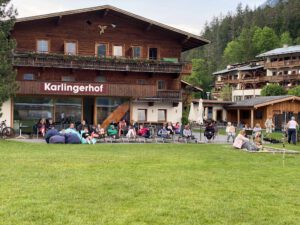 Am Sonntag, 28.05.23 war es endlich wieder soweit. Die Berge riefen – und 33 Wanderer kamen! Nach großer Vorfreude startete wieder die traditionelle 6 Tage Wanderfreizeit – dieses Jahr nochmals am Karlingerhof direkt am Achensee. Schon bei der Ankunft meinte es das Wetter gut mit uns und wir wurden mit einer fast schon kitschig anmaßenden Bilderbuchromantik erwartet. Tiefblauer Himmel, strahlender Sonnenschein, saftig grüne Wiesen, die Berggipfel noch schneebedeckt und der teils ins türkisblaue sich wandelnde Achensee. Wanderherz was willst Du mehr! In dieser Woche war für jeden etwas dabei, von Extrem-Wanderungen bei 1600 Höhenmetern mit Klettern und Seilabgängen über Wildblumenromantik am Gipfelkreuz, tolle Morgenandachten, Städteshopping mit lockerem Geldbeutel, E-Bike Rundfahrten zum Teil mit „attraktiven“ Zielen bei Rüdi, leckeres schmackofatzo Almhopping oder einfach nur chillen und baden am Alpenstrand mit gelegentlichen Fuballeinsätzen und Saltos auf dem Trampolin.