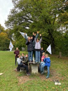 Am Samstag wurden verschiedene Lager gebaut – ein Highlight auf fast jeder Freizeit. Mittags ging die kulinarische Reise dann aber ins ferne Asien: die leckeren Asia Noodles mit Gemüse schmeckten allen. Frisch gestärkt konnten dann die olympischen Spiele starten. Zuerst mussten noch Flaggen gestaltet werden. Und was wären die Spiele ohne den Einlauf und dem Entzünden des olympischen Feuers? Danach gab es olympische Momente und sportlich Höchstleistungen. Beim Diskuswerfen (Teebeutelweitwurf), im Sprint und beim Breakdance. Aber auch in den weniger bekannten Disziplinen wie Tontaubenschießen und Pedalo-Wettrennen wurden strahlende Sieger ermittelt.